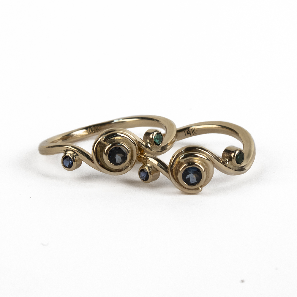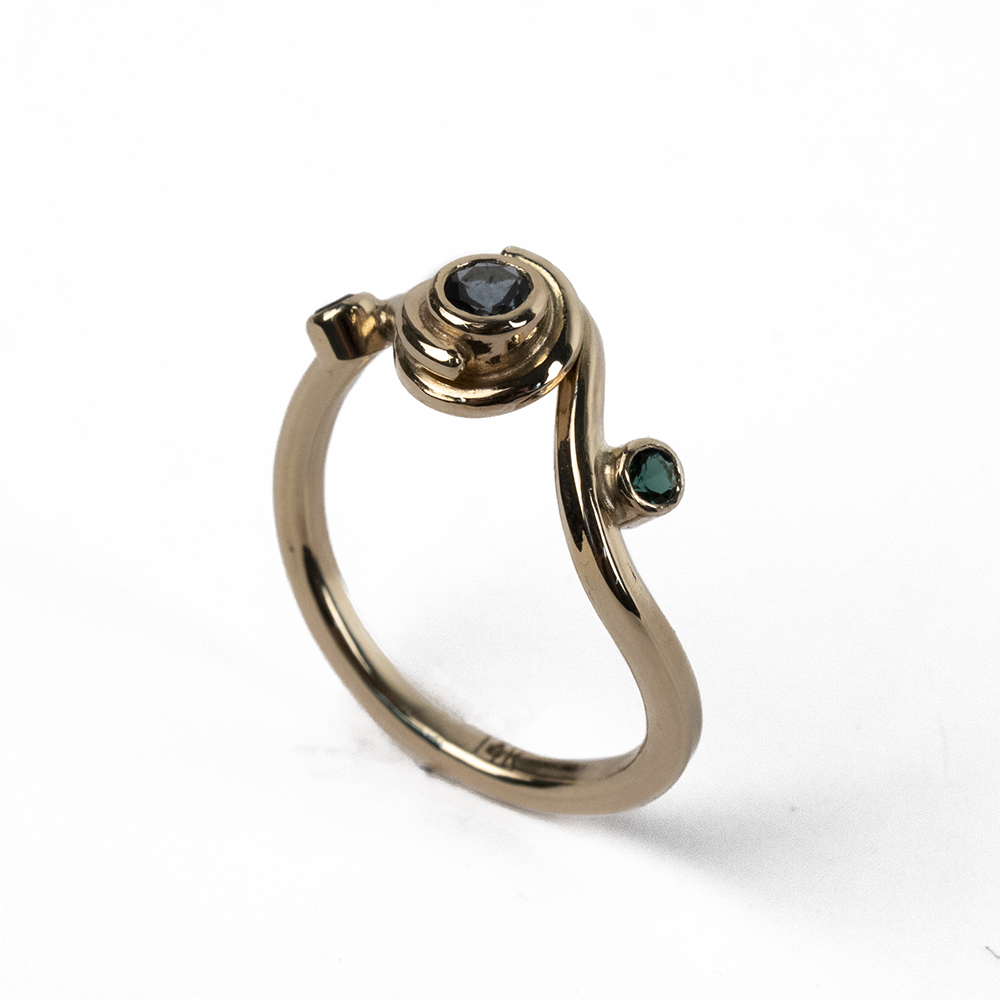 Materials: Solid 14k Gold, Montana Teal Sapphire, Blue Sapphire, Emerald